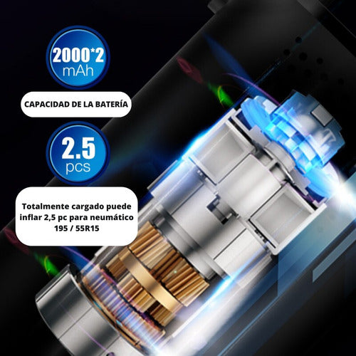 PROMOCION ENVIO INMEDIATO Mini bomba de aire eléctrica para coche, Inflador de neumáticos inflable inalámbrico portátil, compresor de aire para coche, motocicleta y bicicleta balón 150 PSIPortátil, sin cables, complicaciones: el diseño compacto y ligero es para un fácil almacenamiento y muy conveniente para que lo lleves a cualquier lugar.Inflado preciso y controlado: el gran medidor de presión digital muestra tanto la corriente como el objetivo lado a lado con precisión de 1.5. Sigue inflando solo hasta la presión deseada.4 tipos de modos de inflado preestablecidos, bicicletas, motocicletas, coches y bolas se muestran claramente en la pantalla LED grande, conveniente para que elijas. El modo manual te permite establecer el valor de presión de acuerdo con el objeto de inflado y el inflado se detiene automáticamente a la presión establecida. Muy fácil de usar.Inflado inalámbrico duradero. Para resolver la ansiedad de la vida útil de la batería, el pequeño compresor de aire portátil tiene una gran batería integrada,es completamente de manejo de necesidades diarias o emergencias, incluye 3 boquillas, perfecto para inflar coches, motocicletas, bicicletas, pelotas.Para cargar usar adaptador de 5v a 1amperio (no incluido)Material: ABSCorriente: 10AVoltaje: 7.4VPotencia: 50WFlujo de presión de aire: 25L/minTipo de energía: Recargable TIPO-C